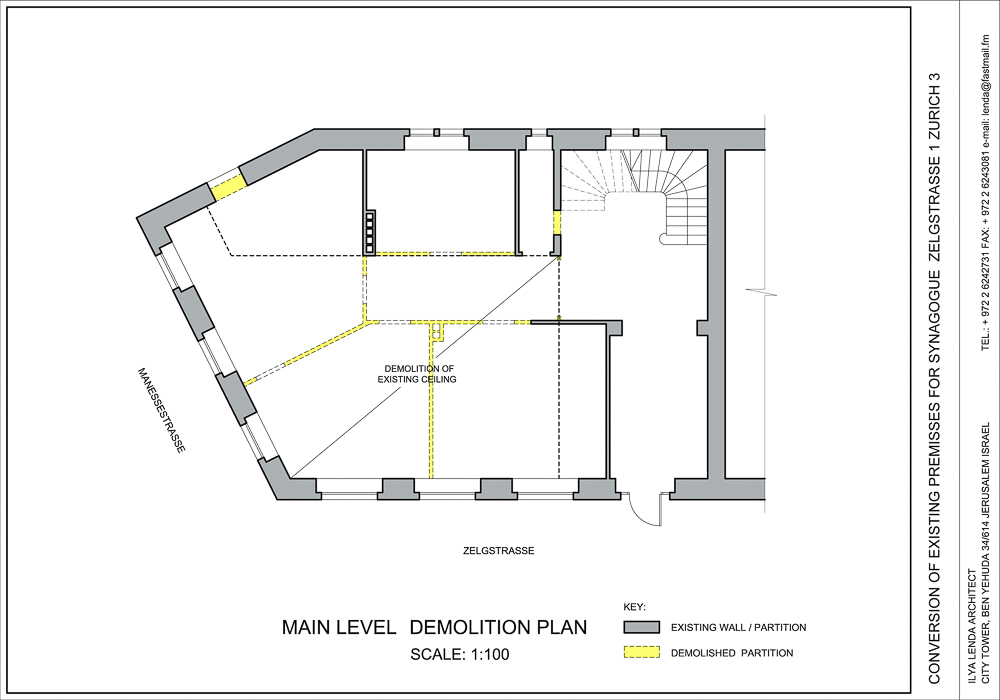 Conversion of two Vertically Linked Apartments on the Ground and the First Floors of 1928 y. Apartments House for a Synagogue. Location: ZelgStraße 1, Zürich 3.